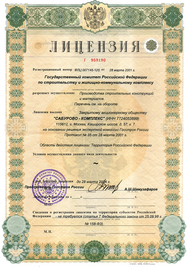ЗАО "Сабурово-Комплекс" имеет на территории г.Москвы мощную производственную базу и профессиональные кадры, что позволяет фирме постоянно совершенствовать свои технологии, многие из которых являются передовыми.